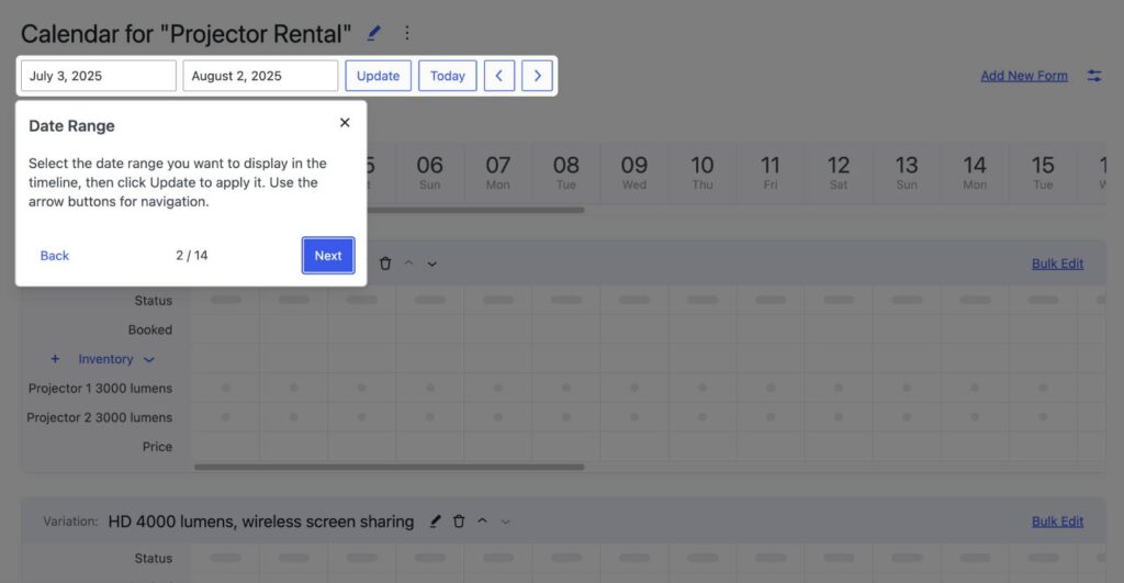 - Klicken Sie auf „Variante hinzufügen”, um neue Mietarten innerhalb desselben Kalenders hinzuzufügen.
